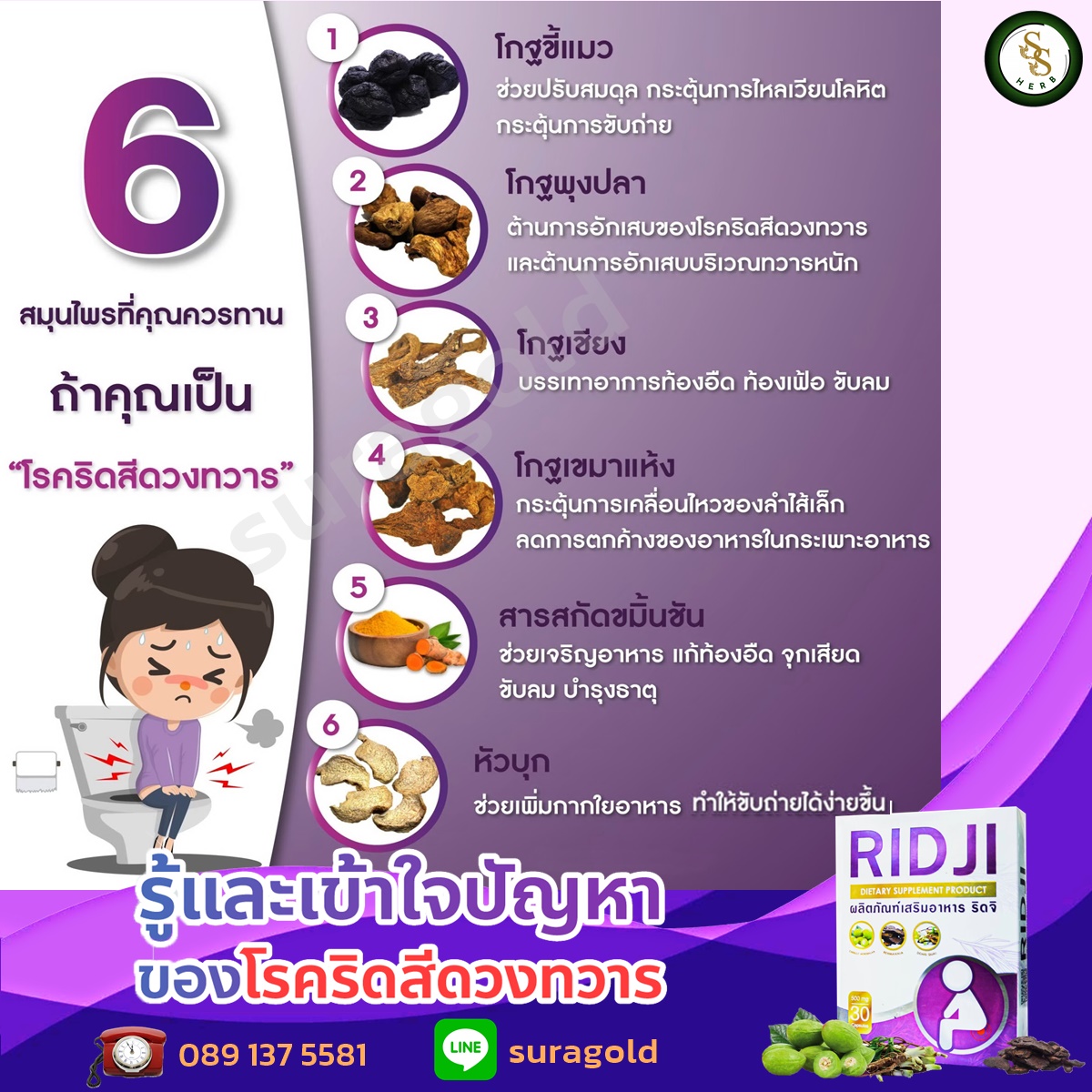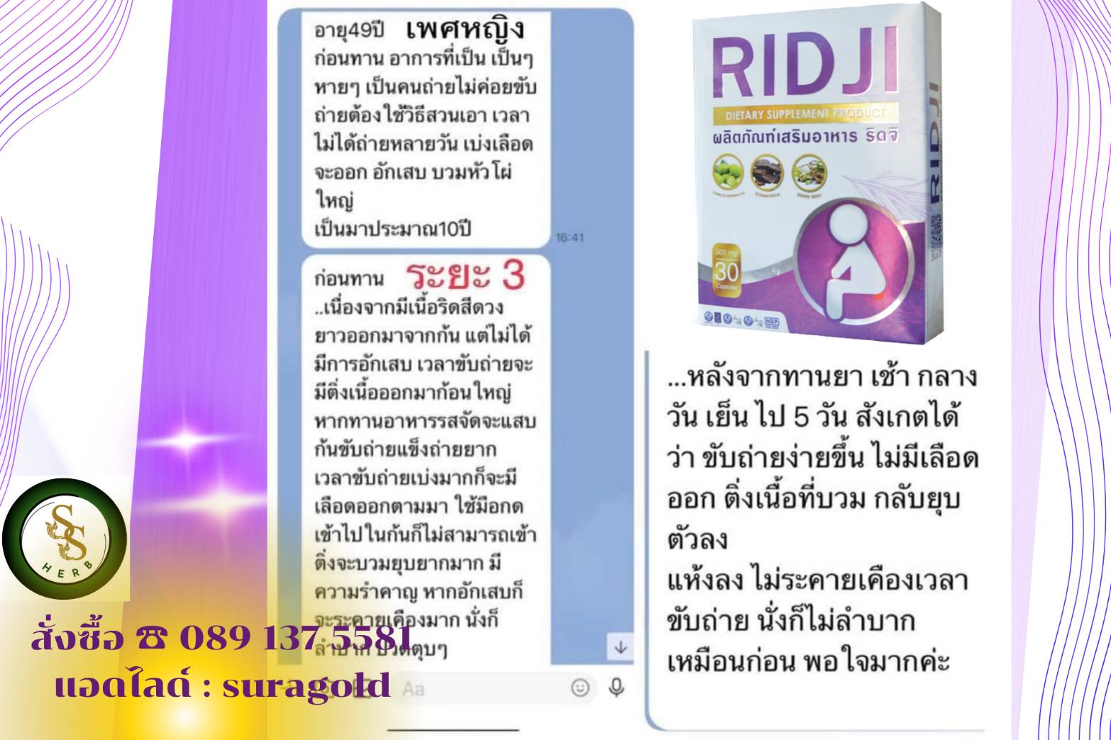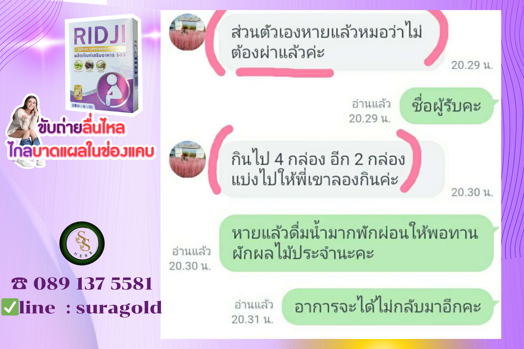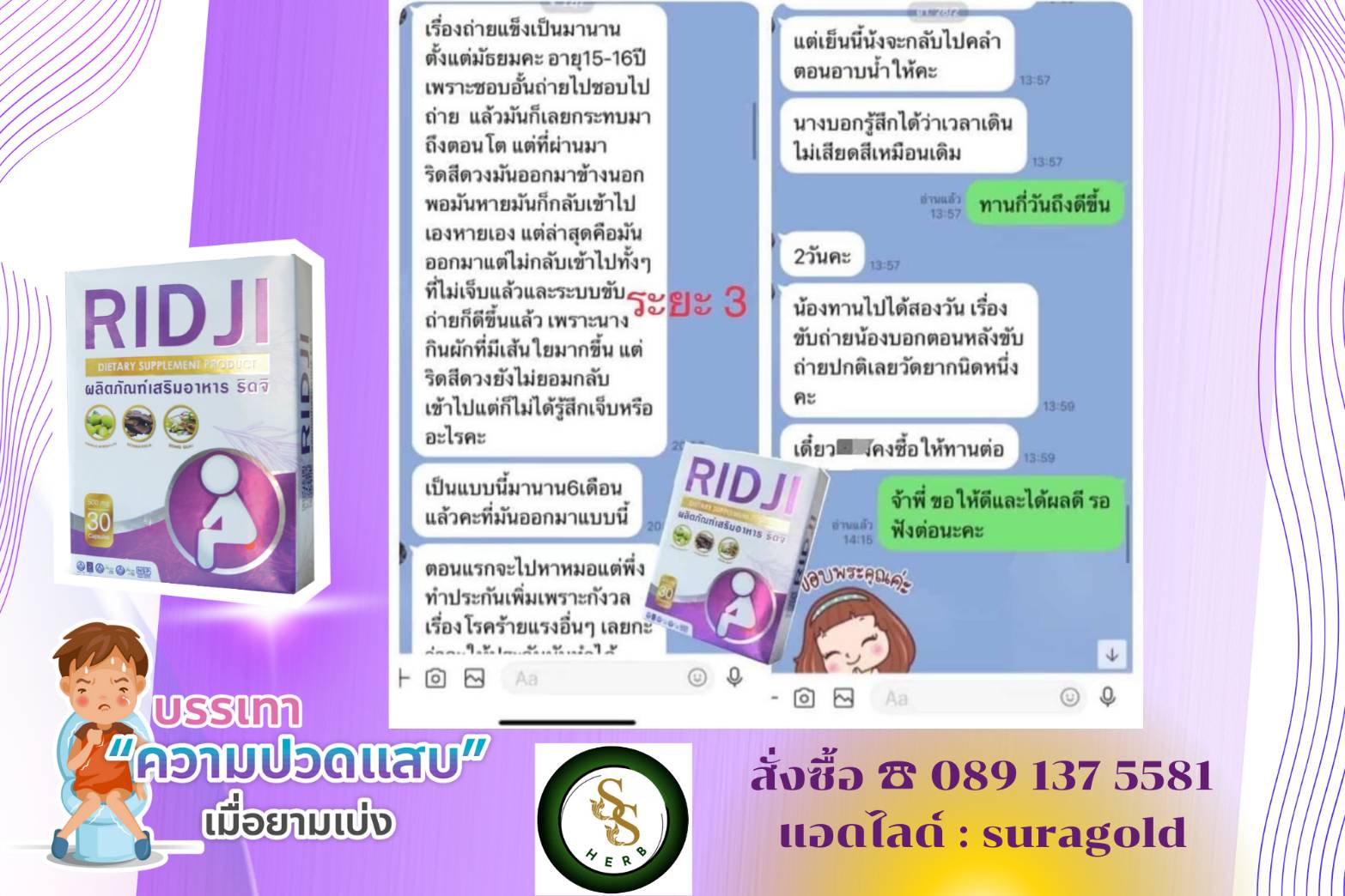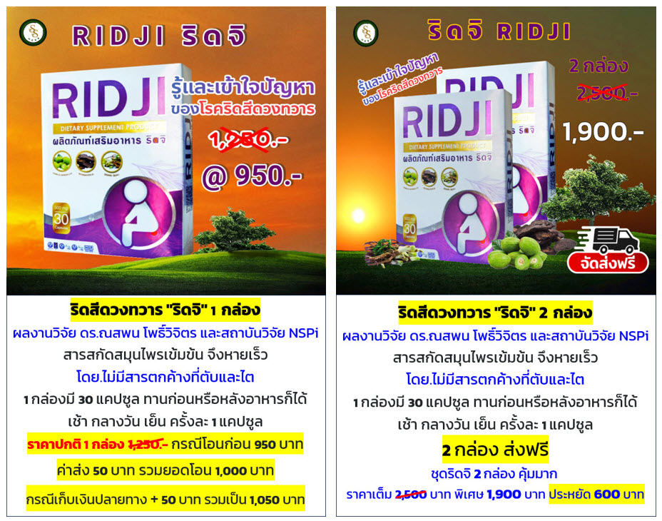 Ridji ริดจิ ถ่ายลื่นปรี๊ด ริดสีดวงทวาร ท้องผูก ท้องเสียเรื้อรัง